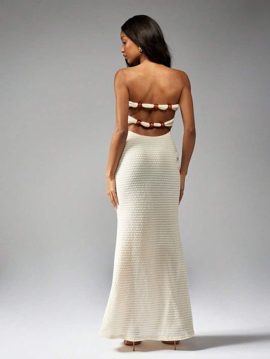 Abito Maxi all'uncinetto con perline e ritagli