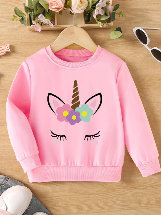 Felpa con stampa unicorno per ragazze con scollo rotondo