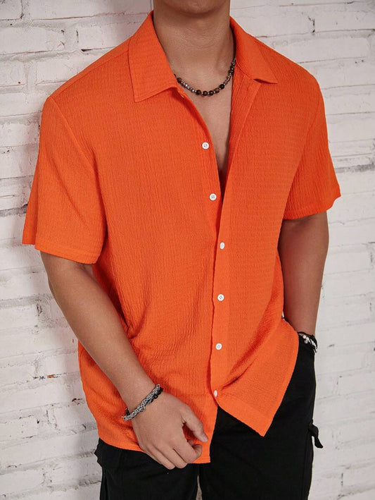 Oranje Heren Overhemd Korte Mouwen Regular Fit
